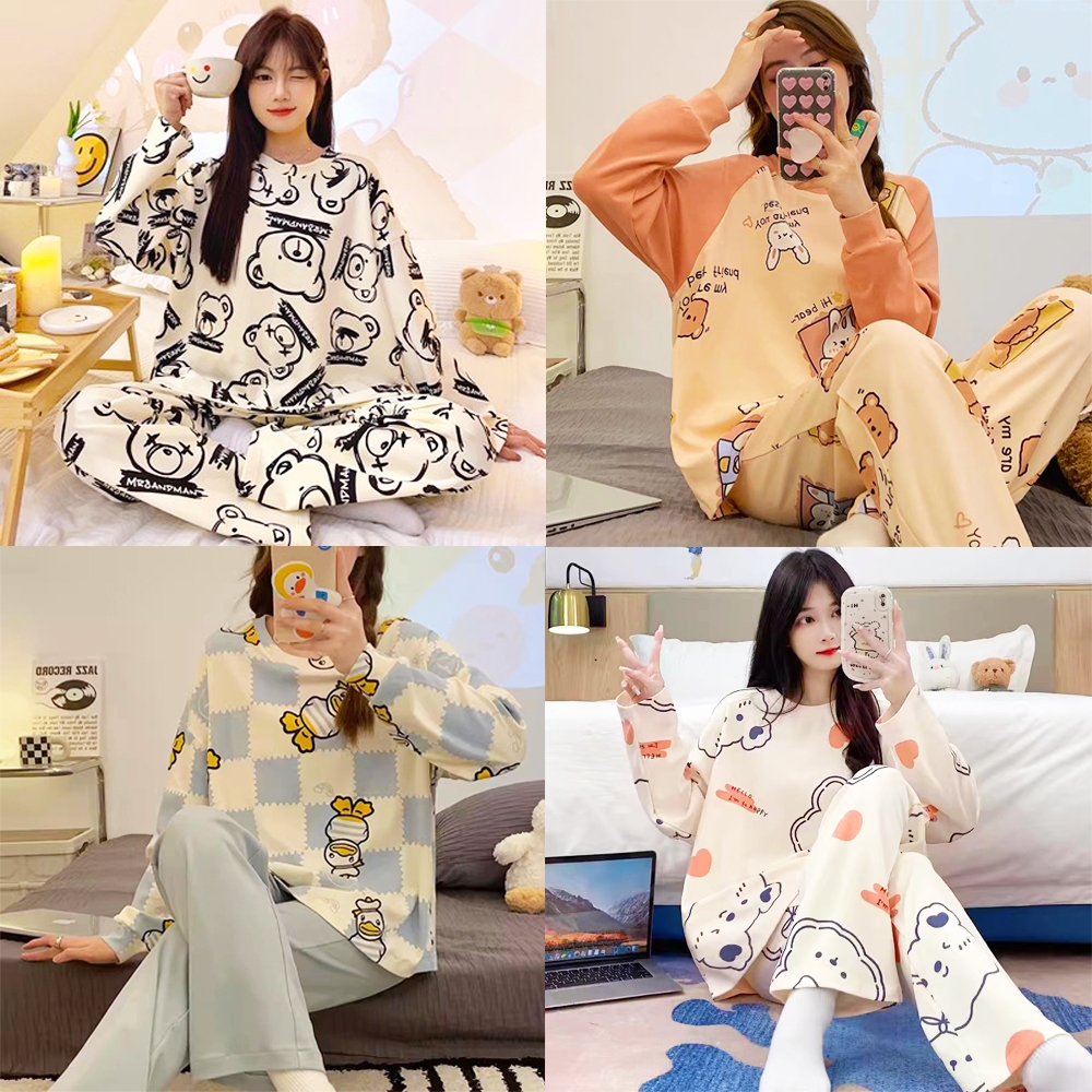 Baju Tidur Wanita Set Piyama Pajama Lengan Panjang Motif Lucu