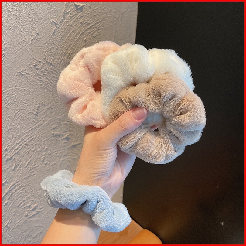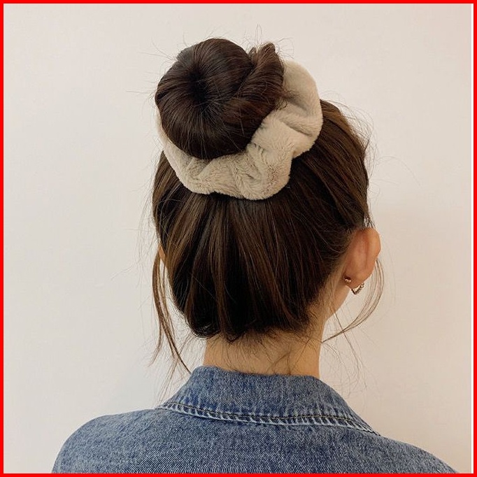 Osm Jkt F5723 Ikat Rambut Scrunchie Korea Kunciran Cepol Rambut Lingkar Besar Bulu Lembut Motif Polos Aksesoris Fashion