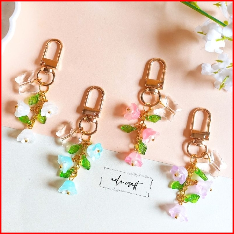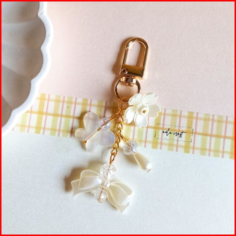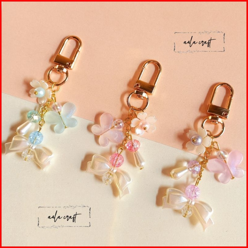 Keychain Premium Flower Butterfly Beads Charm Coquette Korean Style Gantungan Tas Gantungan Kunci Lucu Aesthetic