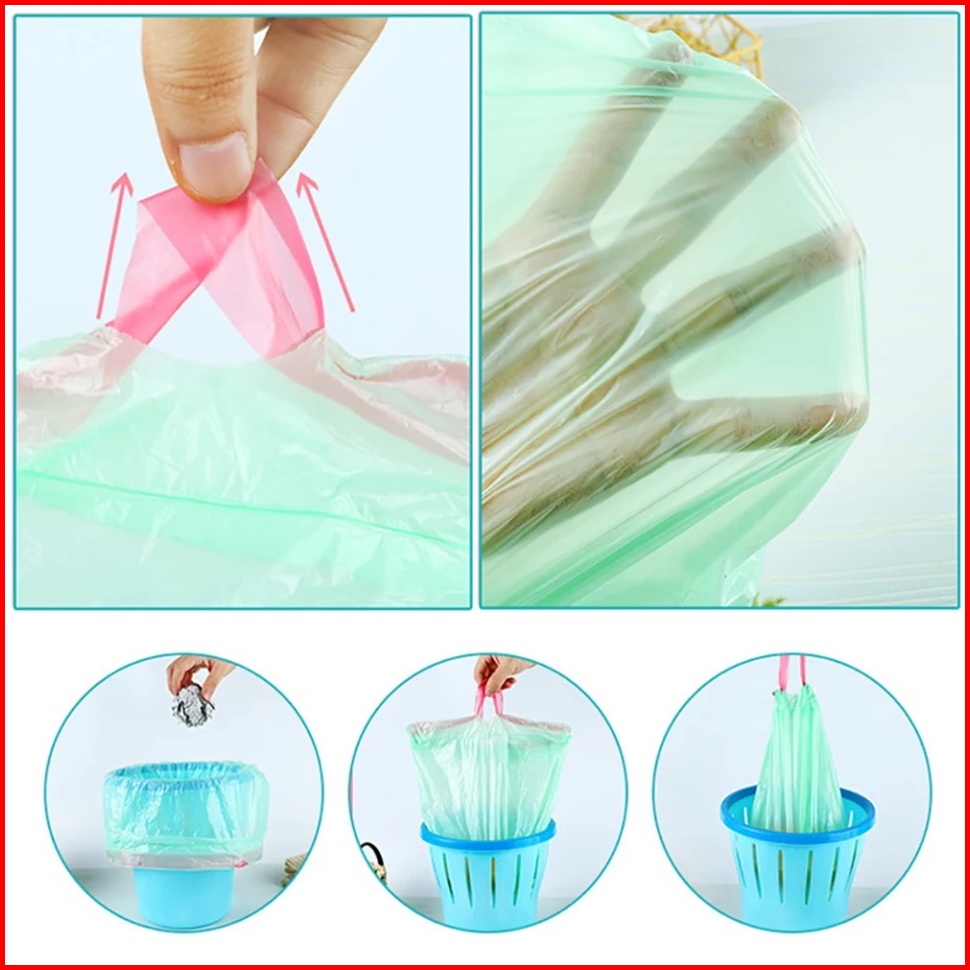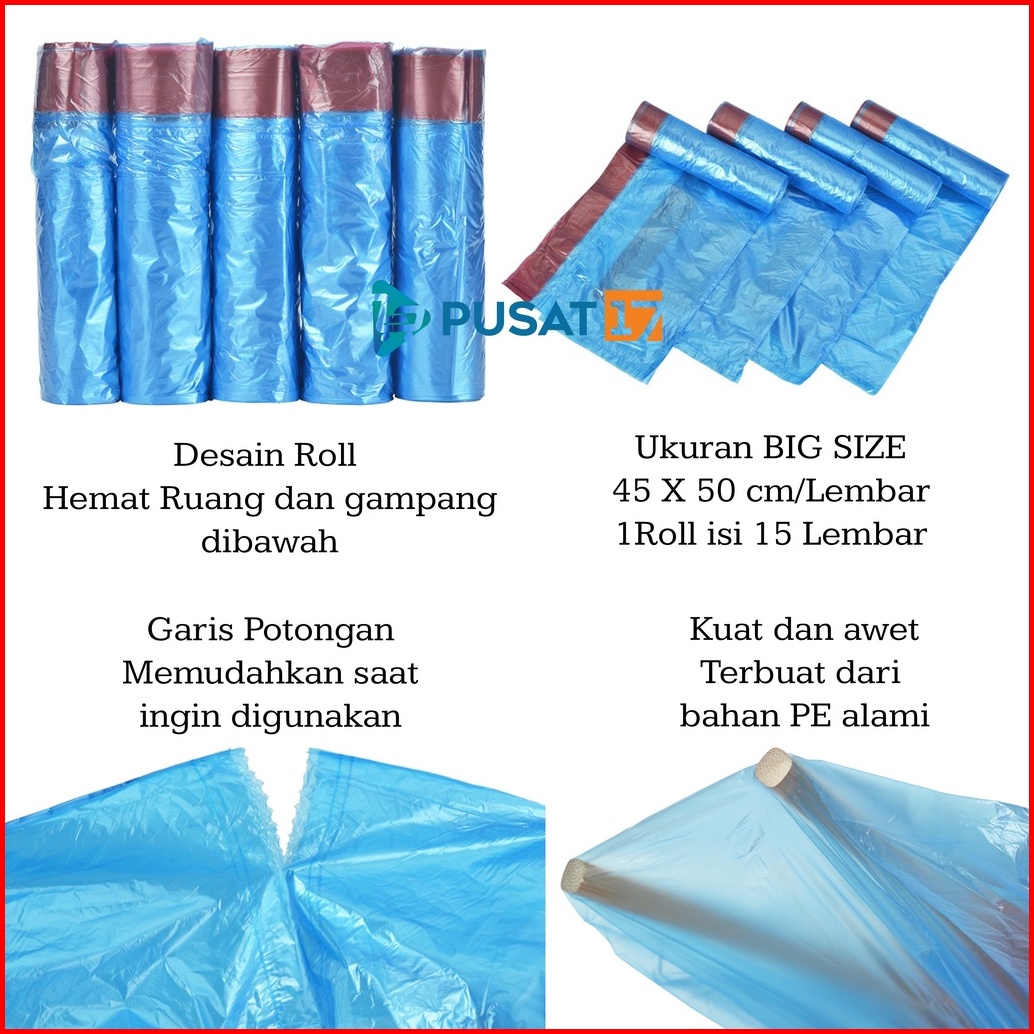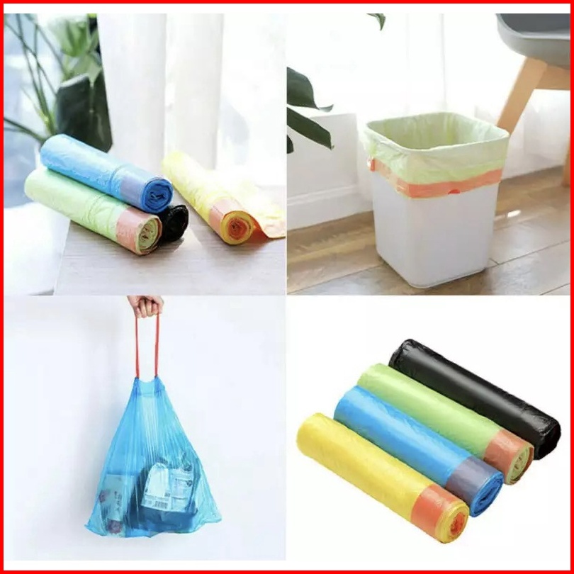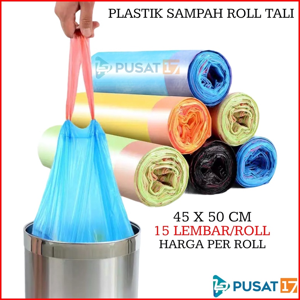 Kantong Plastik Sampah Roll Dengan Tali 45x50cm Isi 15 Lembar Kantong Plastik Gulung Plastic Trash