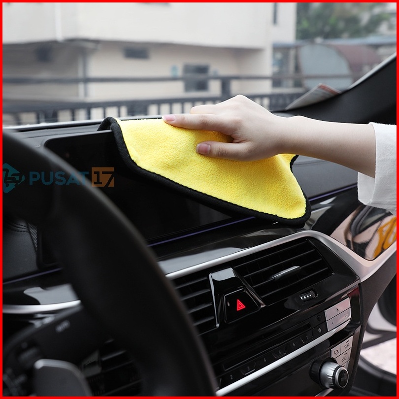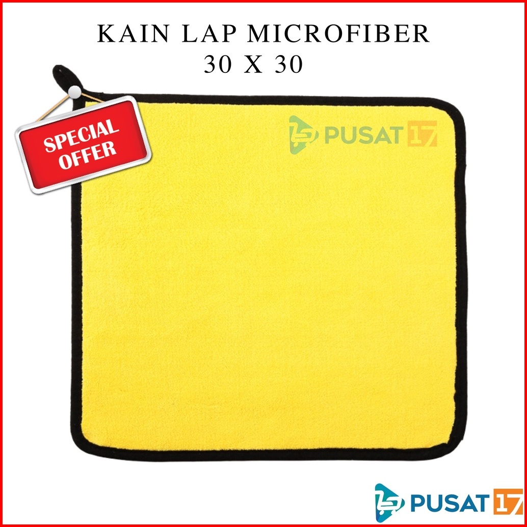 Pusat17 Kain Lap Mobil Microfiber 30 X 30 Kain Lap Kuning Serbaguna 30x30 Kain Lap Motor Dapur Car Wash Towel
