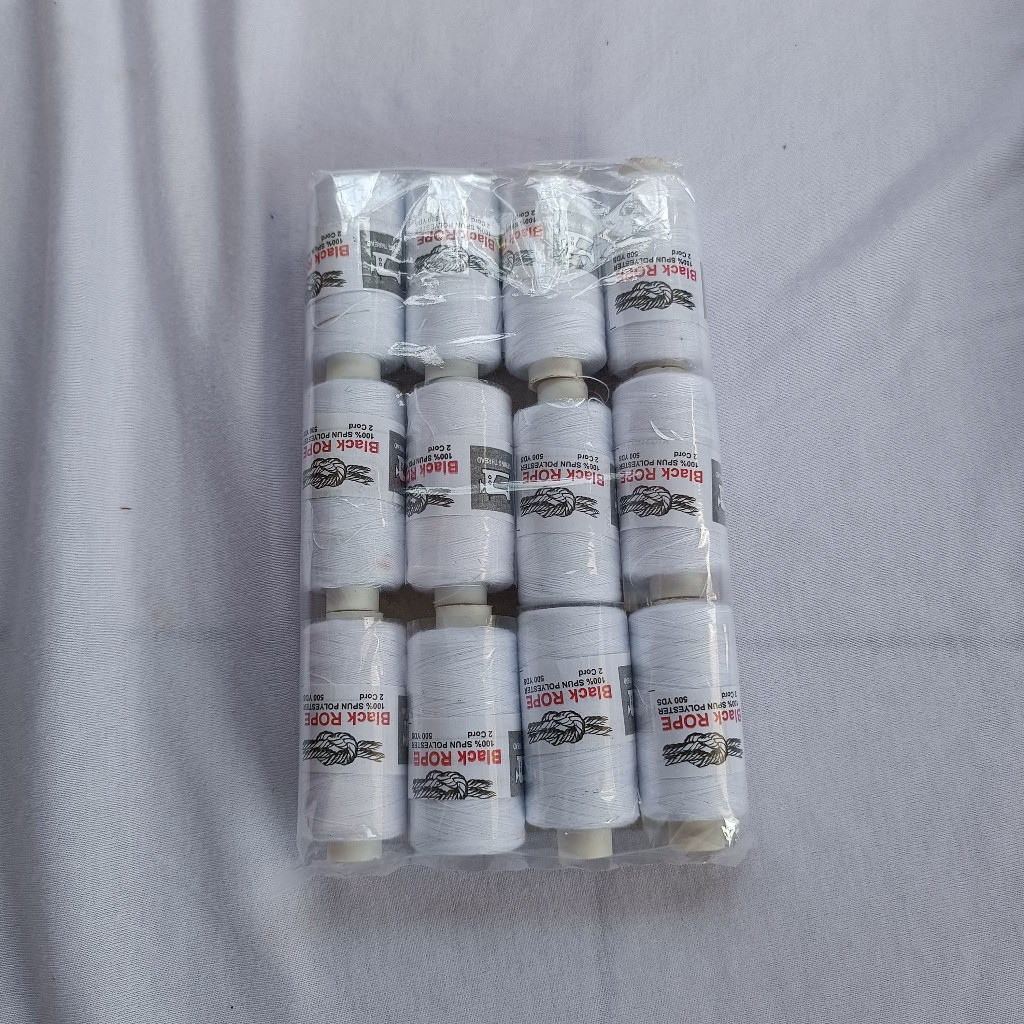Benang Jahit 500 YARD Warna Netral – Hitam Putih – Isi 1 Lusin – Polyester