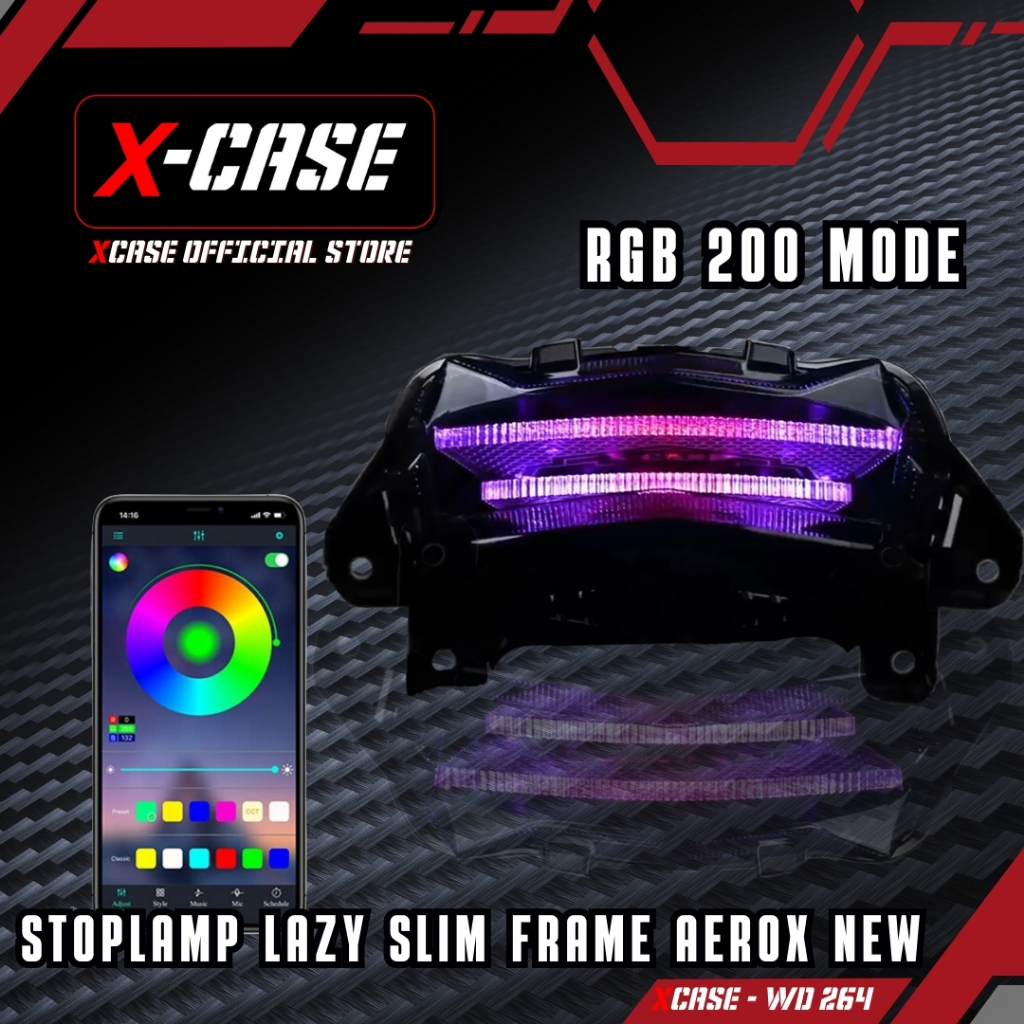 X-Case Lampu Stop Aerox New Lazy Slim Frame Audi 200 Mode App Tombol Click Running WD 264