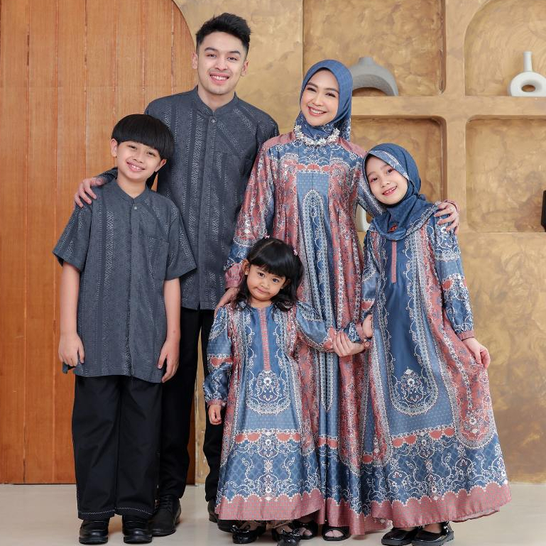 Sarimbit Keluarga Lebaran 2026 Couple Set Couple Family Zufra Maritim Blue Keke Busana