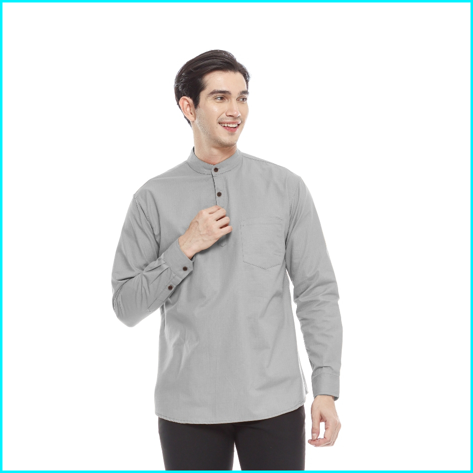Outskirts - Kemeja Koko Grey Abu-abu Pria Lengan Panjang Slimfit