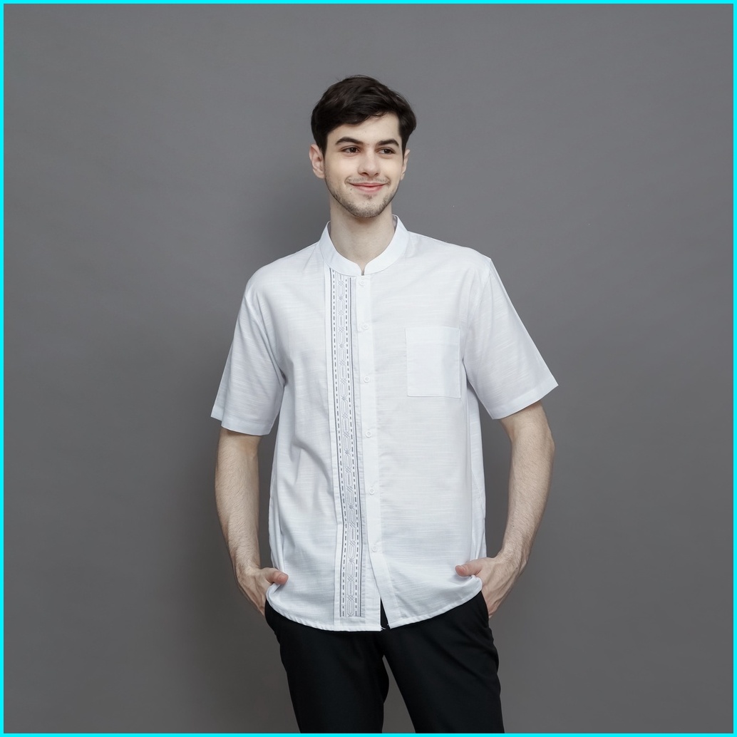 Loa Studios - Baju Koko Kemeja Bordir Lengan Pendek Pria Putih - Kanz