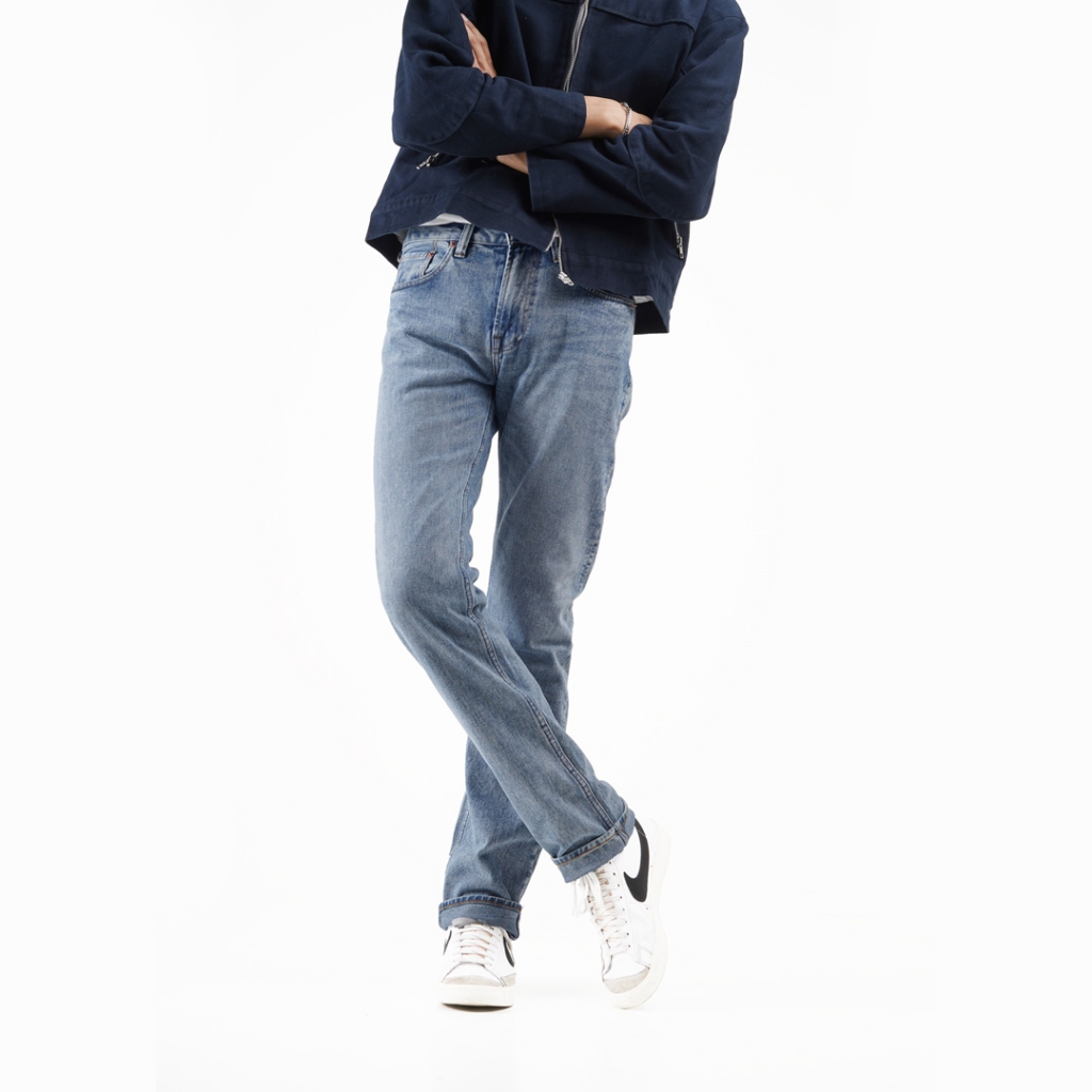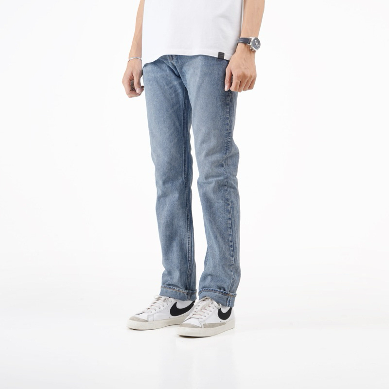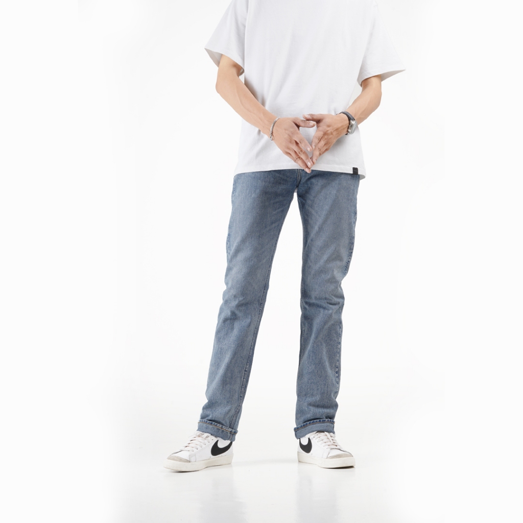 Volkvog Jeans Light Blue Celana Panjang Washed Denim Pria Slim Straight Biru