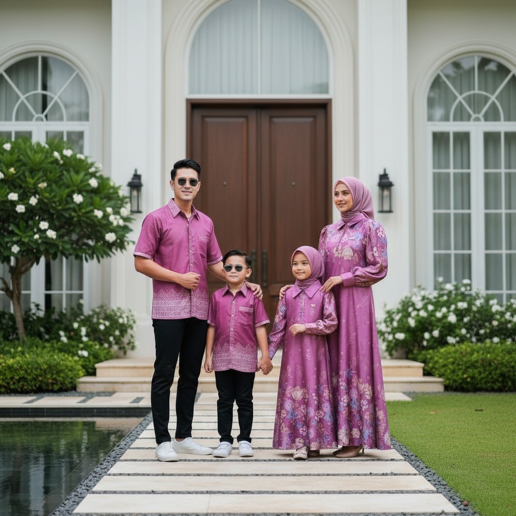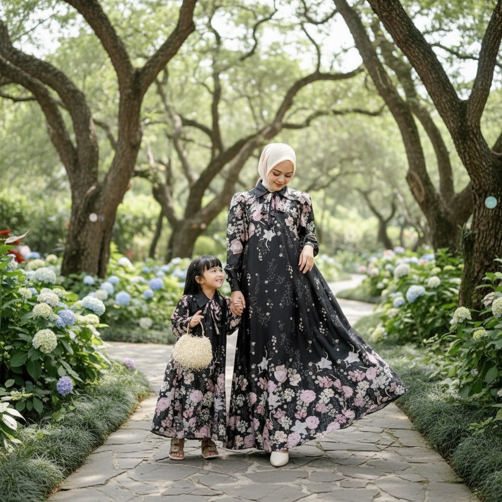 Raya Elise Family Sarimbit Keluarga Lebaran 2026 Coupel Gamis Muslim Perempuan Kemeja Silk Premium