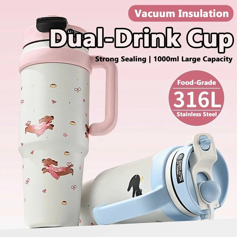 [Free brush]Tumbler 316 Stainless Vacuum 1000ml Portable Thermos Botol Minum Besar Botol Minum Portabel 1 Liter Botol