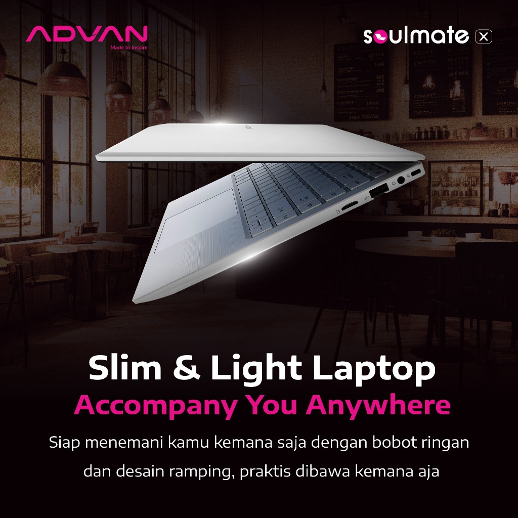 ADVAN Soulmate X | 14 Inch FHD | AMD 3020e | 4GB/128GB Upgradable | Slim & Elegant Design | Charger Type C | Free WINDOWS 11 Original | Garansi Resmi 1 Tahun