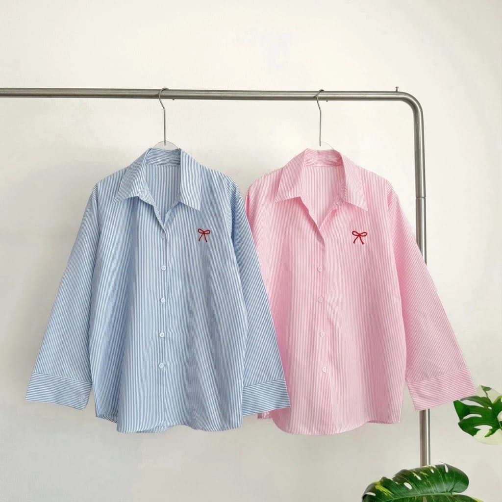 BAJU WANITA Kemeja Wanita Ribonia Salur Katun Pita Bordir BAJU WANITA TERBARU KEKINIAN