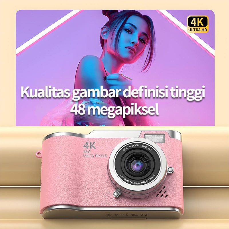 Free 64G Kamera Digital 48MP/75MP 8X Zoom Kamera Digicam Layar Balik 180° LCD 2,4 Inci 4K/5K Vlog Anti Goyang Filter Kam