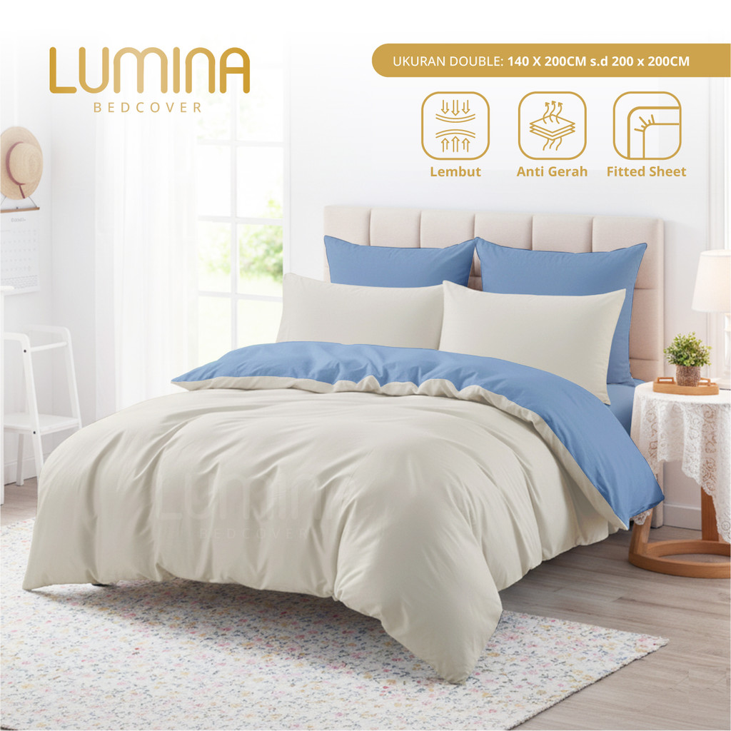 Lumina Bedcover - Sprei & Bedcover Set Oatmeal Mix Royal Blue - Ukuran Lengkap 140x200/180x200/160x200/200x200