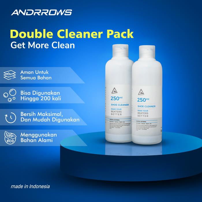 ANDRROWS - SHOE CLEANER - DOUBLE CLEANER PACK - PAKET CAIRAN SABUN PEMBERSIH SEPATU 2 PCS UKURAN 250 ML