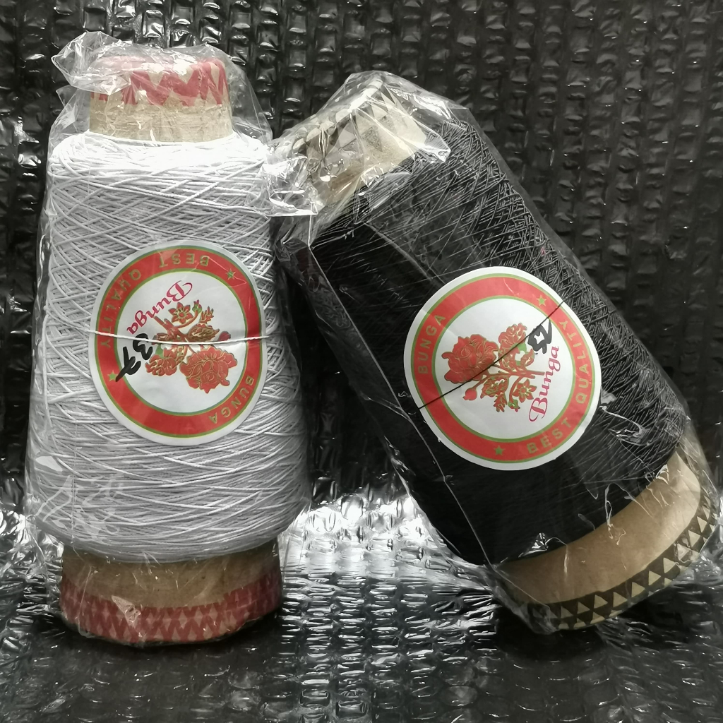 Benang Jahit Karet / Benang Karet Elastis Merek Bunga Putih / Hitam Nomor 37 / 52