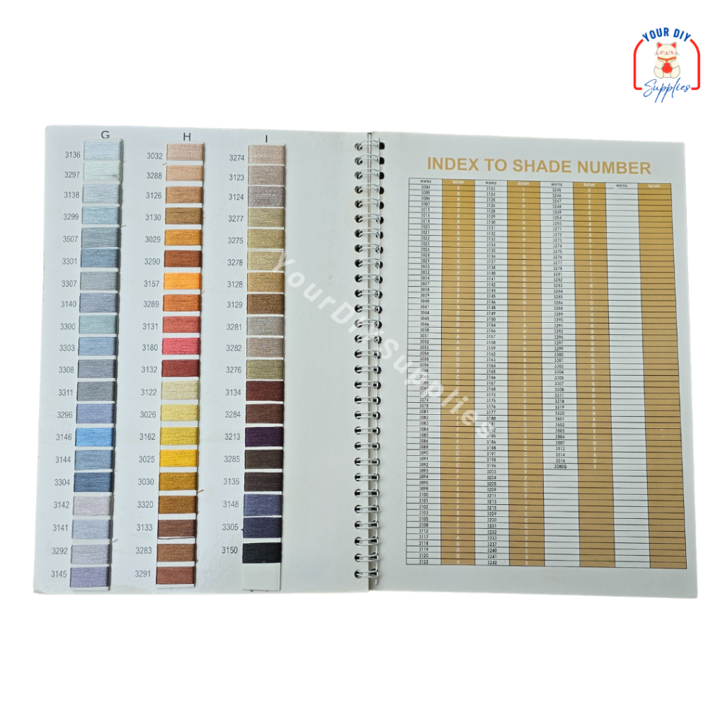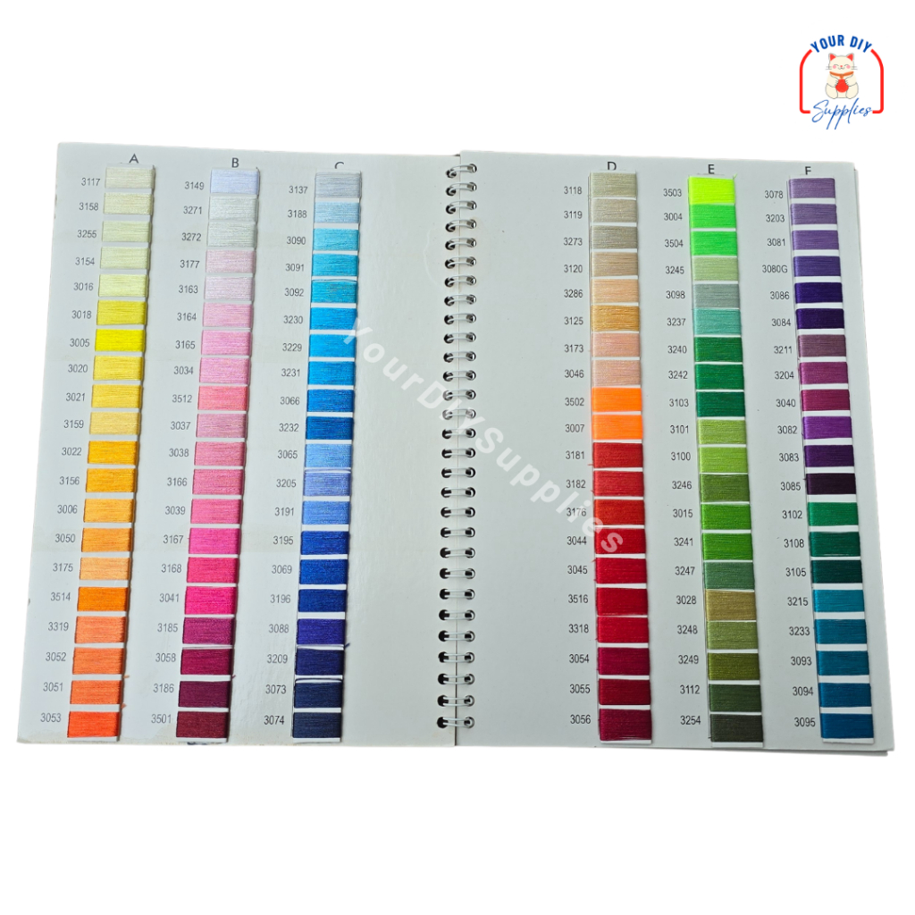 3005 Kuning Kenari, 3006 Jingga Muda, 3012 Magenta, 3015 Hijau Limau, 3026 Kuning Jahe, 3032 Coklat Susu, 3041 Pink Fanta, 3044 Merah, 3054 Merah Tua, 3058 Maroon, 3066 Biru, 3069 Biru Elektrik, 3074 Biru Dongker, 3078 Ungu Lilac, 3083 Ungu Violet, 3088 Biru Keunguan, 3092 Biru Turquoise, 3095 Biru Tosca, 3102 Hijau Daun, 3120 Cream, 3123 Mocca, 3135 Coklat Tua, 3140 Abu, 3142 Abu Sage, 3149 Putih, 3150 Hitam, 3156 Kuning Emas, 3188 Telur Asin, 3229 Biru Muda, 3231 Biru Turkish, 3232 Biru Laut, 3242 Hijau Daun, 3249 Hijau Lumut, 3254 Hijau Army, 3284 Coklat, 3292 Silver, 3502 Jingga Tua, 3514 Jingga, 3516 Merah Bendera