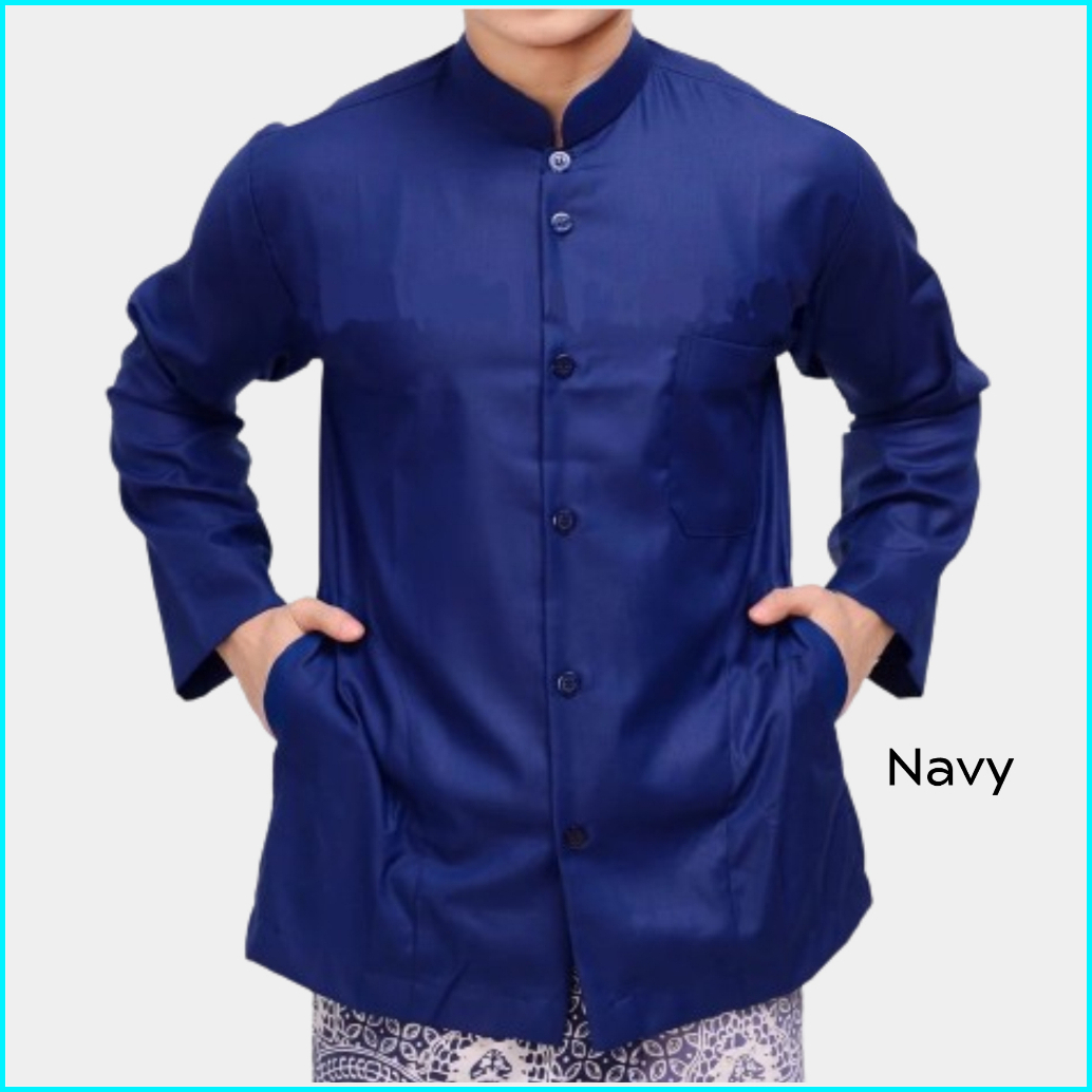 Baju Koko Pria Lengan Panjang Saku Samping Polos Sarimbit Keluarga Warna Cream Seragam Hadrah Kajian