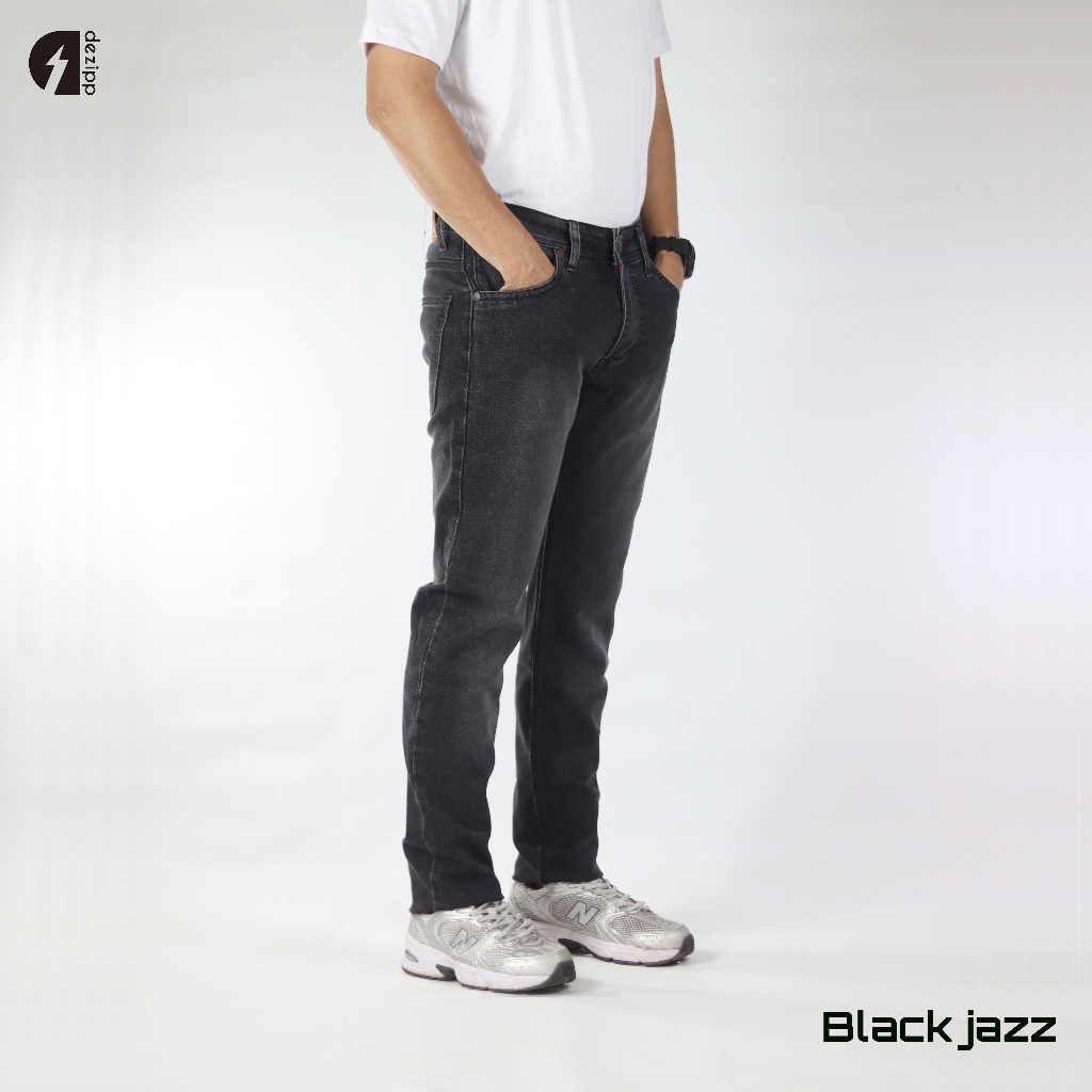 Celana Panjang Pria Dewasa Jeans Skinny Stretch Bahan Melar Black Jazz