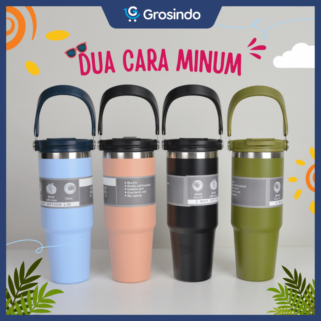 Termos Tumbler Portable 900ML Botol Air Minum Stainless Steel Premium Tahan Panas & Dingin