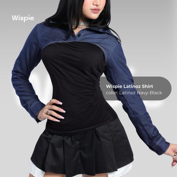 Wispie Latinoz | Kemeja Denim Spandex Stretch Wanita Draping - Latinoz