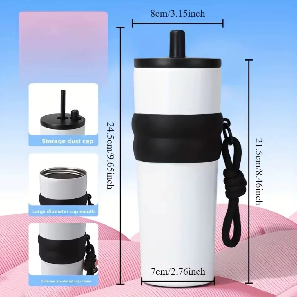 Mug Tumbler 710ml Stainless Steel SUS 316 Free Sedotan & Gantungan / Tumbler Kopi Viral Aestetic M 2116