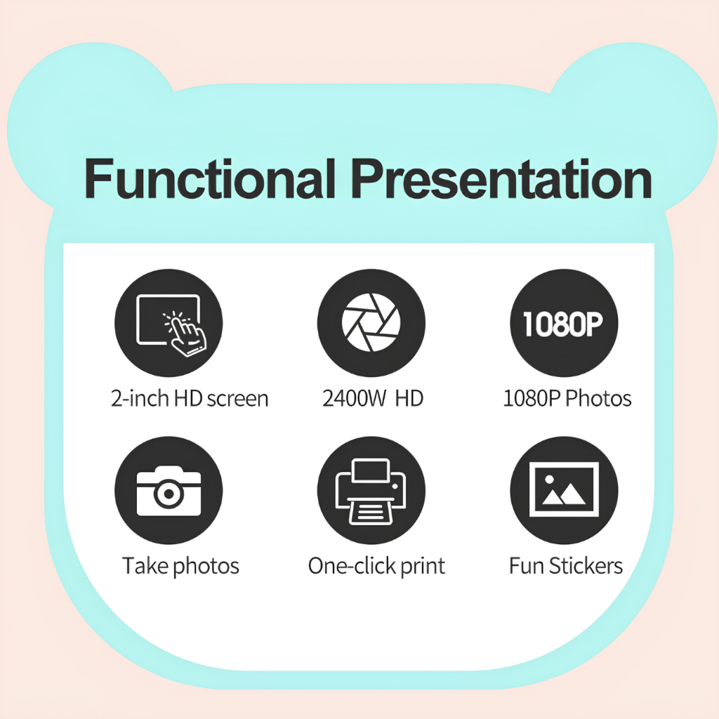 UPLU Kamera Mini Langsung Cetak Foto 48Mp Dual Lensa Kamera Anak Digicam Digital Camera Print