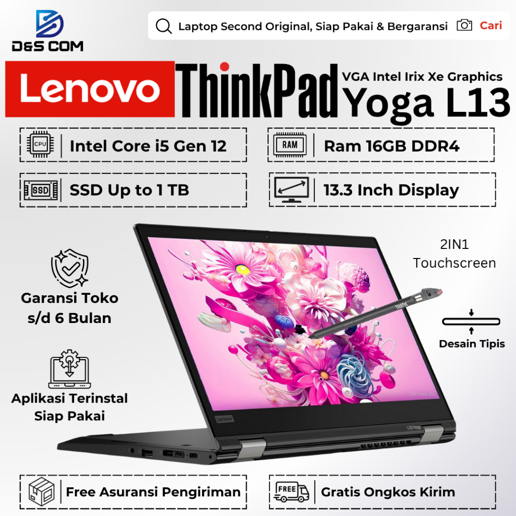 Lenovo Thinkpad Yoga L13 Gen 1 / Gen 2 / Gen 3 i5 Gen 10 / 11 / 12 16GB 512GB Second Bergaransi