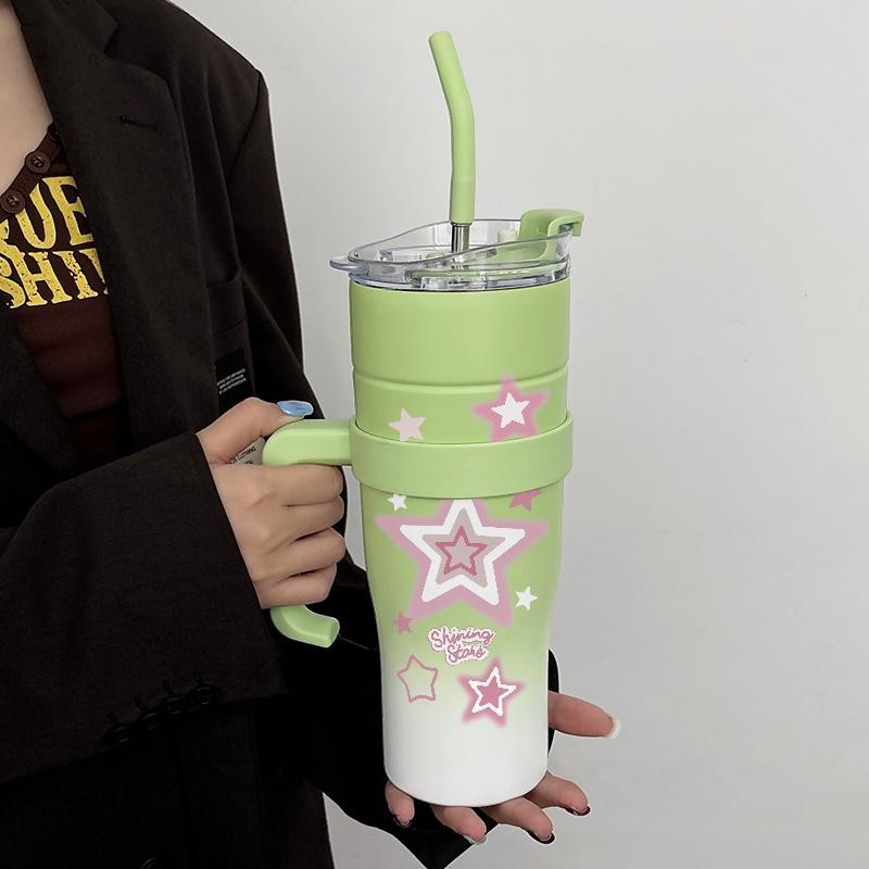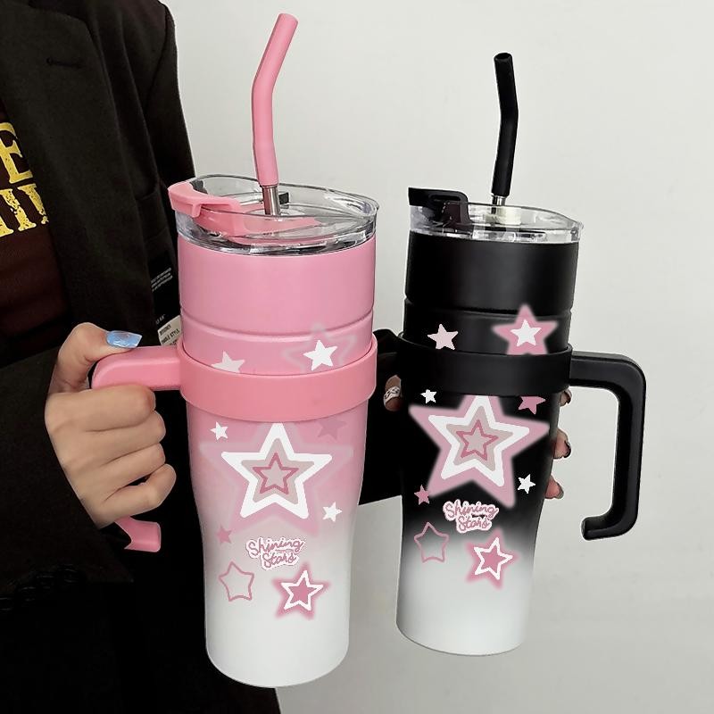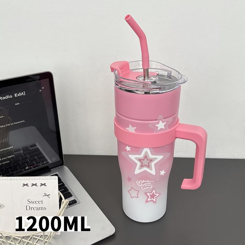 Tumbler Cute Star Botol Minum Aesthetic Stainless Steel Tumblr Coffee CUP 1200 ML Termos Tahan Dingin Panas Tambler Viral Easy Carry Cangkir Kopi Hadiah - BPA Free, Anti Bocor