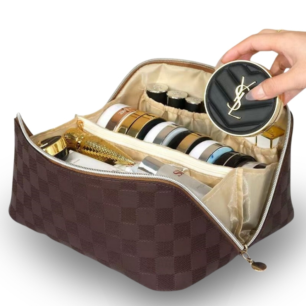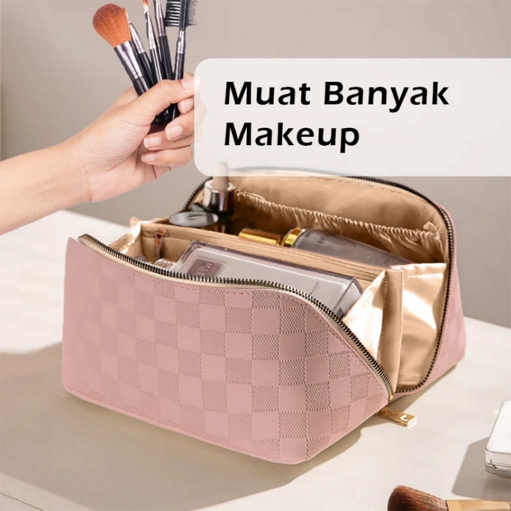 Tas Kosmetik Motif Kotak Waterproof Pouch Cosmetic Bahan Kulit Sintesis - SG02