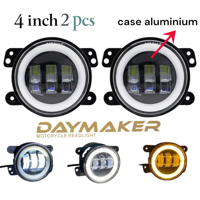 Daymaker Foglamp Lampu Motor Mobil LED 4 Inch 2 Pcs bahan case Aluminium / lampu kabut