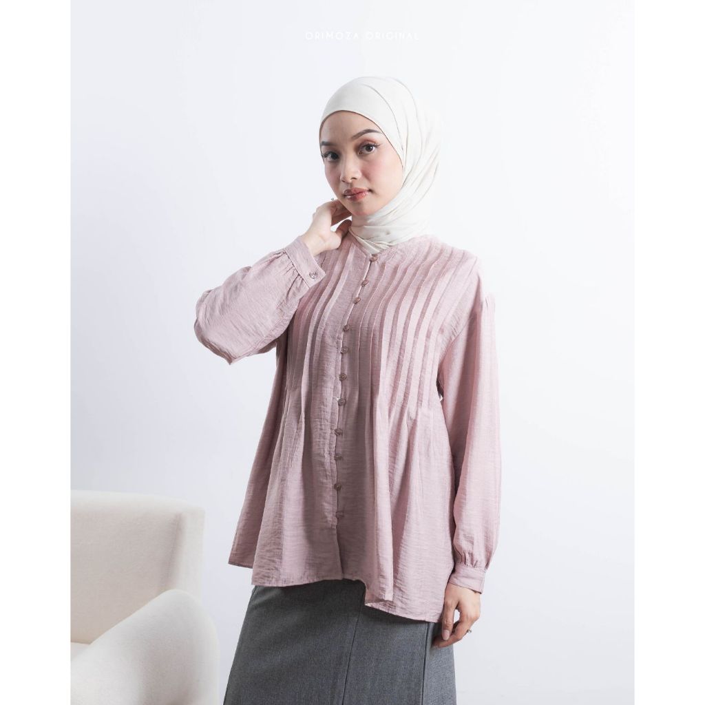 BAJU WANITA Orimoza Selena Blouse Rempel Wanita bahan Polo Linen BAJU WANITA TERBARU KEKINIAN