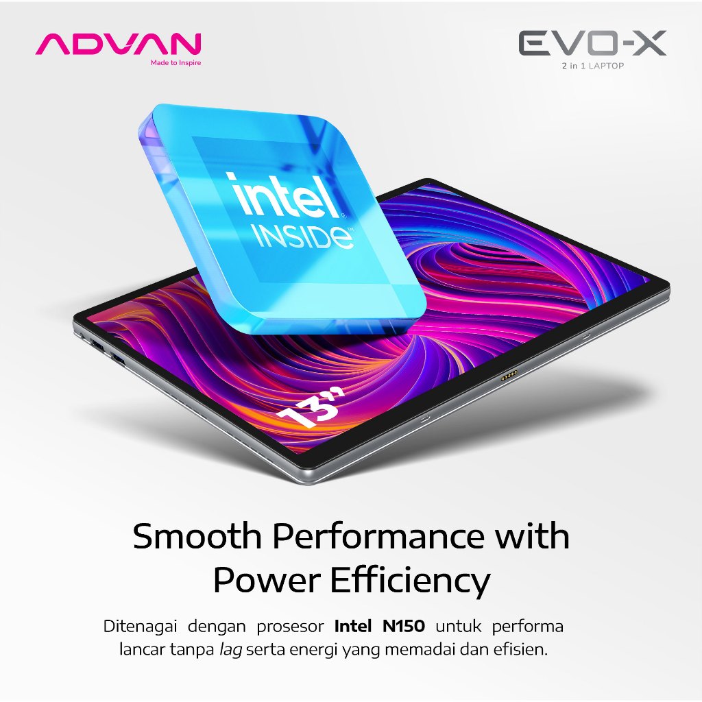 [FREE STYLUS PEN +KEYBOARD] ADVAN Laptop 2 in 1 EVO-X 16” / 13" Touchscreen Detachable 2.5K Display Intel i3-1215U/Intel N150/Intel N100 12GB/512GB Windows 11 - Garansi Resmi 1 Tahun