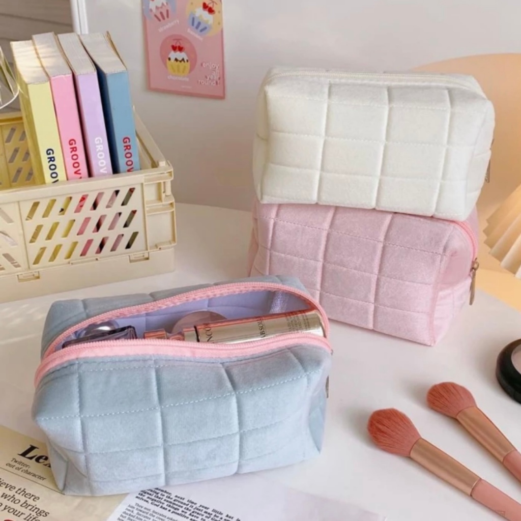 Tas Make up Pillow Besar Kotak kosmetik travel Serbaguna Motif Bulu Pouch Pillow Kotak Pensil Bulu