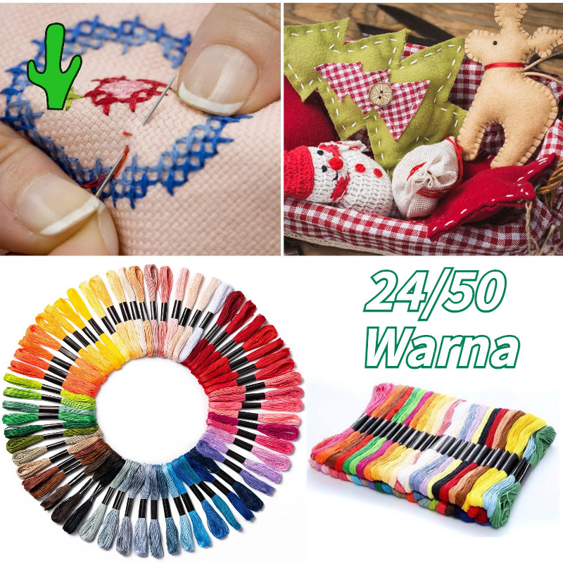 24 Warna 50 Warna Paket Benang Sulam Set Import Embroidery Floss Embroidery Thread Paket Kerajinan