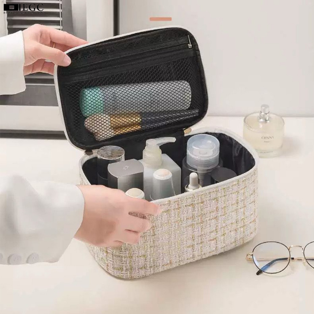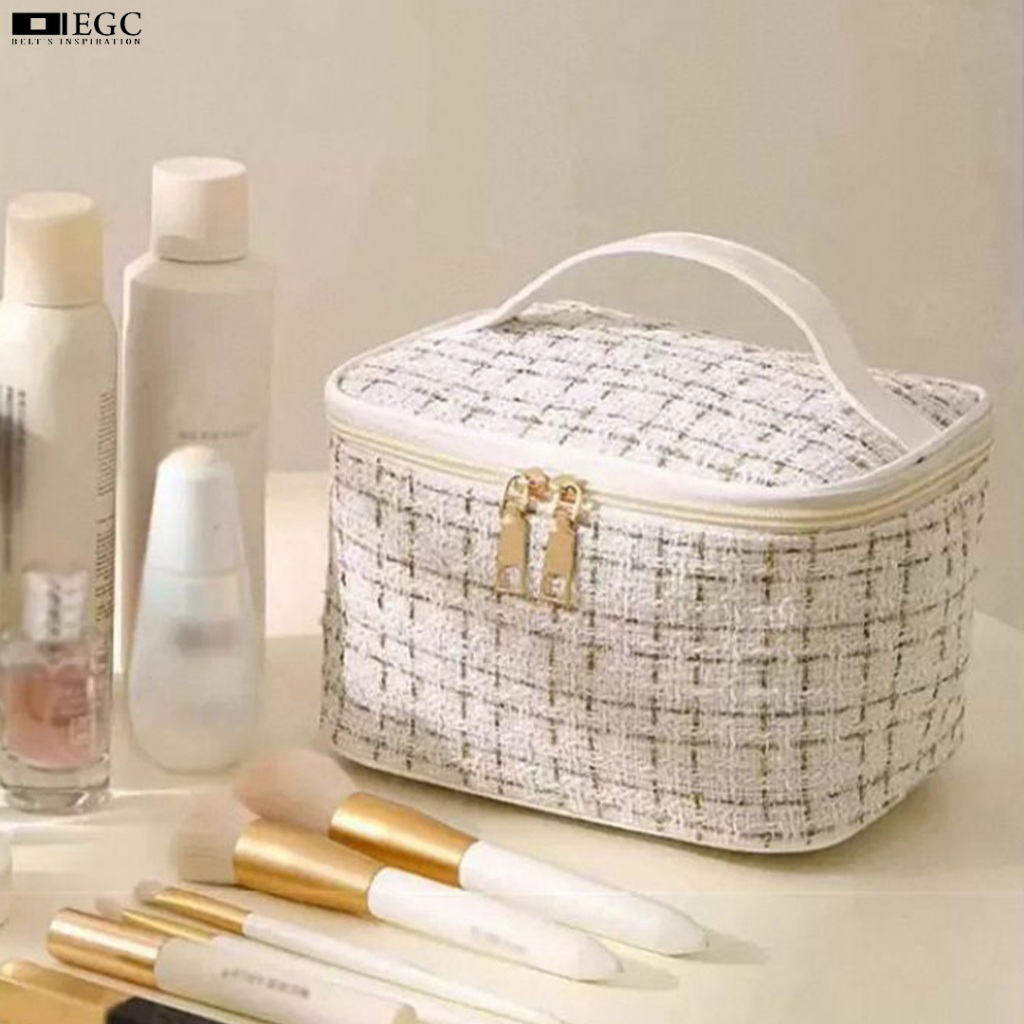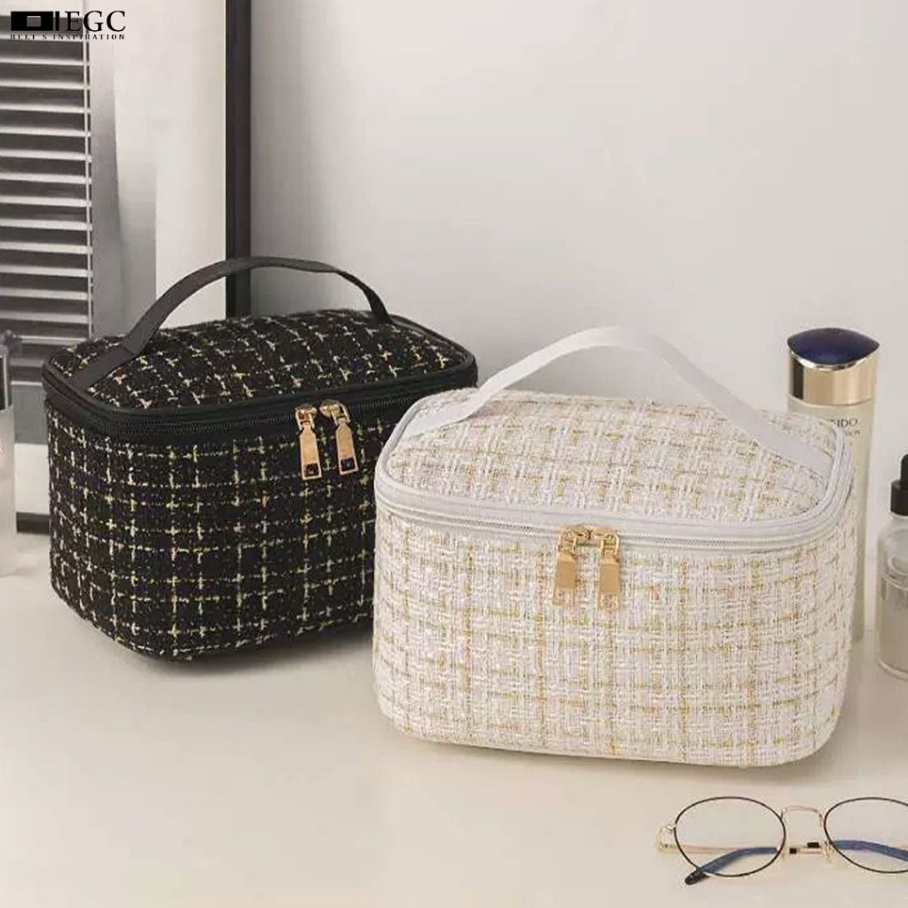 Tas Make Up Kosmetik Travel Bag Pouch Wanita Korea Serbaguna Lucu Sekat Model Garis Mewah - C-323-2P/1H/C-323