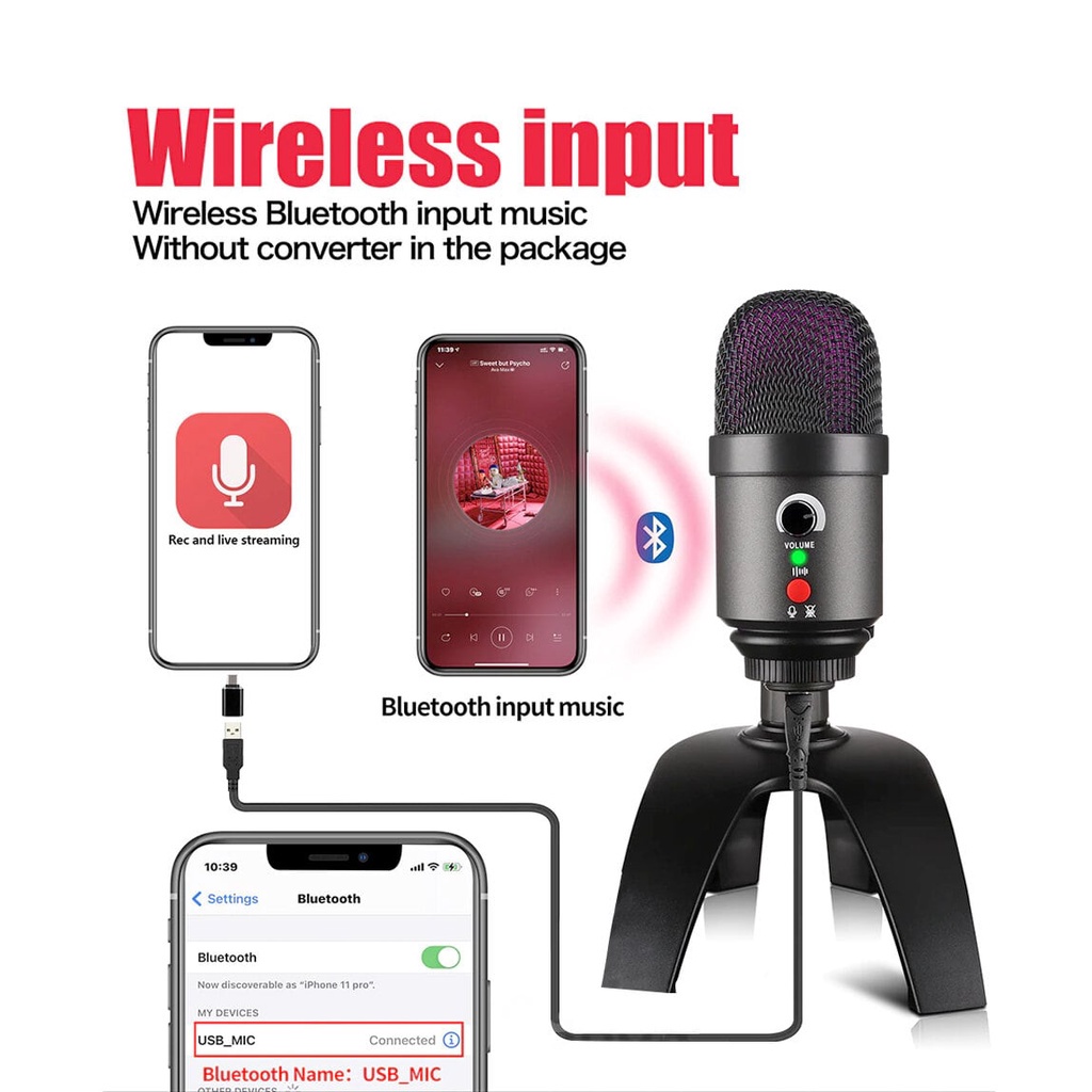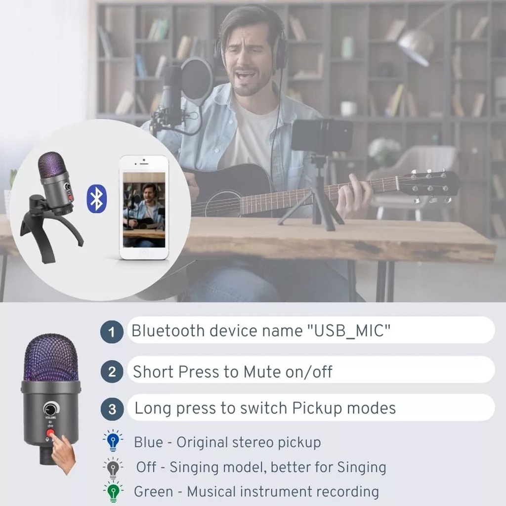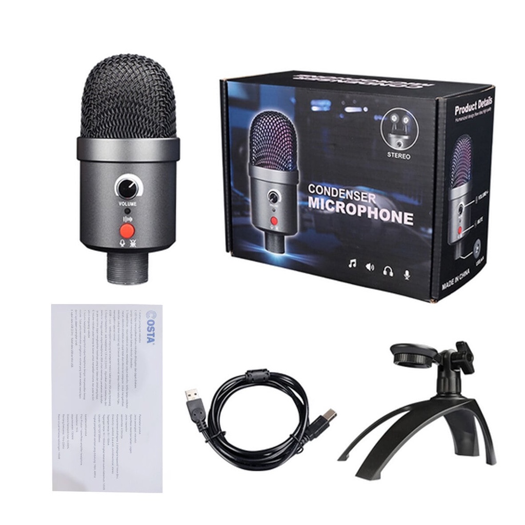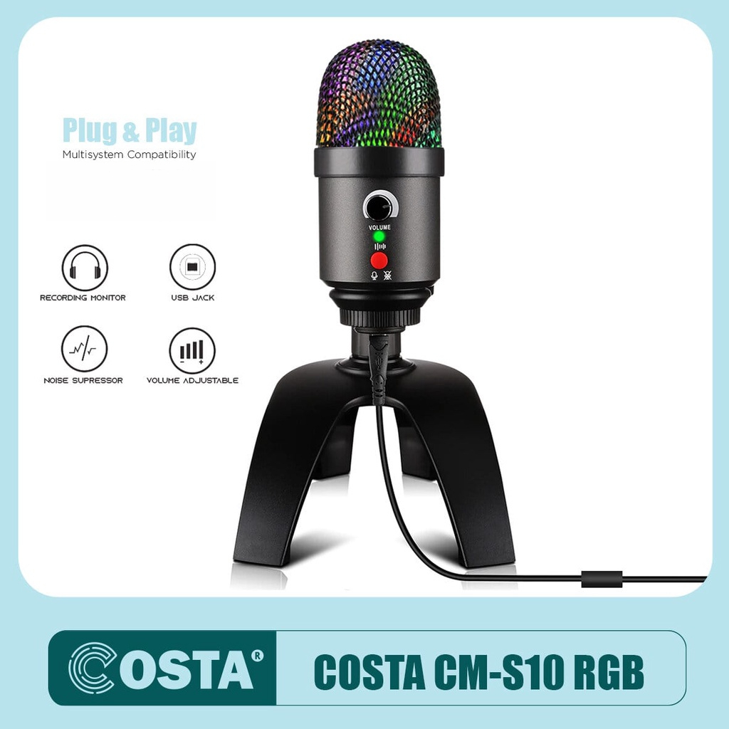 COSTA CM-S10 RGB Condenser Stereo Microphone USB 3 polar pattern mic