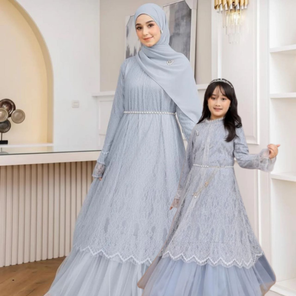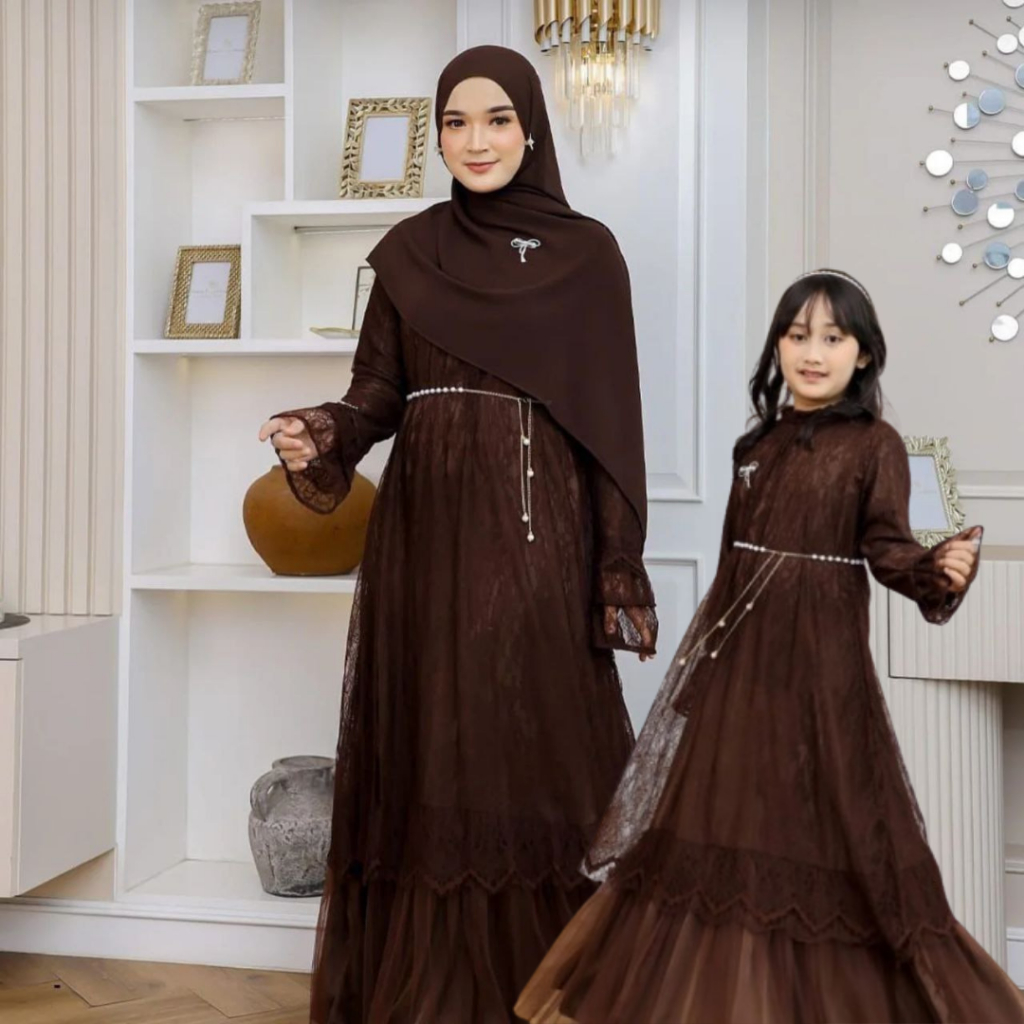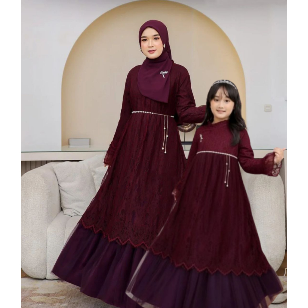 Gamis Couple Ibu Anak Velvet Mix Brokat Renjana Ananta Couple Sarimbit Keluarga 2026 Lebaran Premium