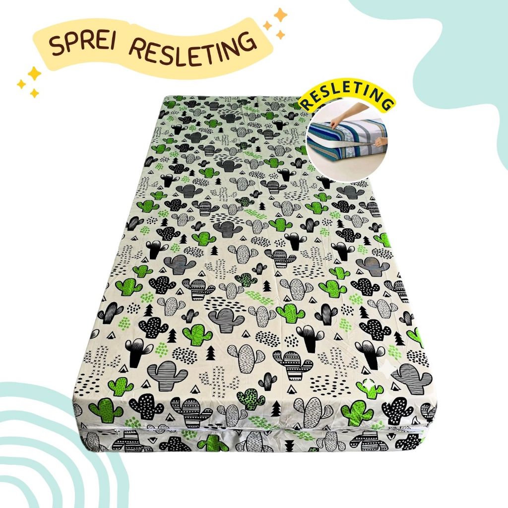 Sarung Kasur Busa Resleting 90x200x15 120x200x15 Motif Karakter Aesthetic Single Uk No.4