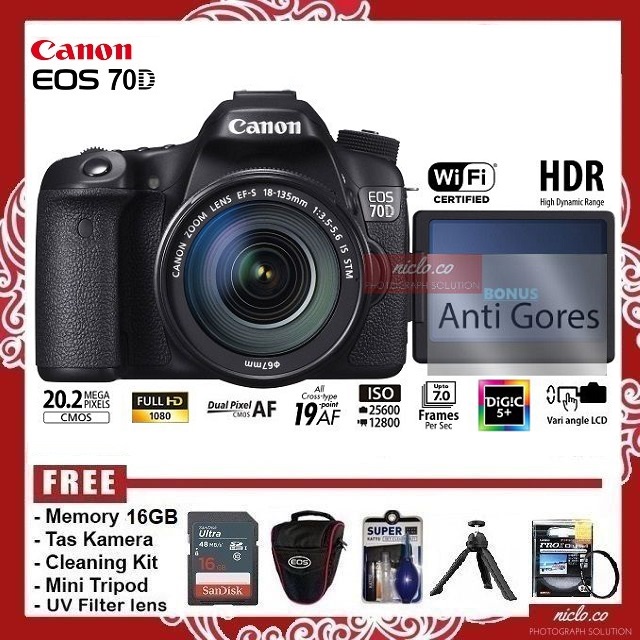 [NEW] KAMERA EOS CANON 70D + LENSA 18-55 STM Wifi -GARANSI 1 TAHUN - FREE ACCESORIES CAMERA DSLR VLOG 60D 6D 7D 80D