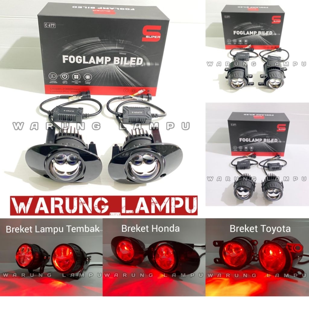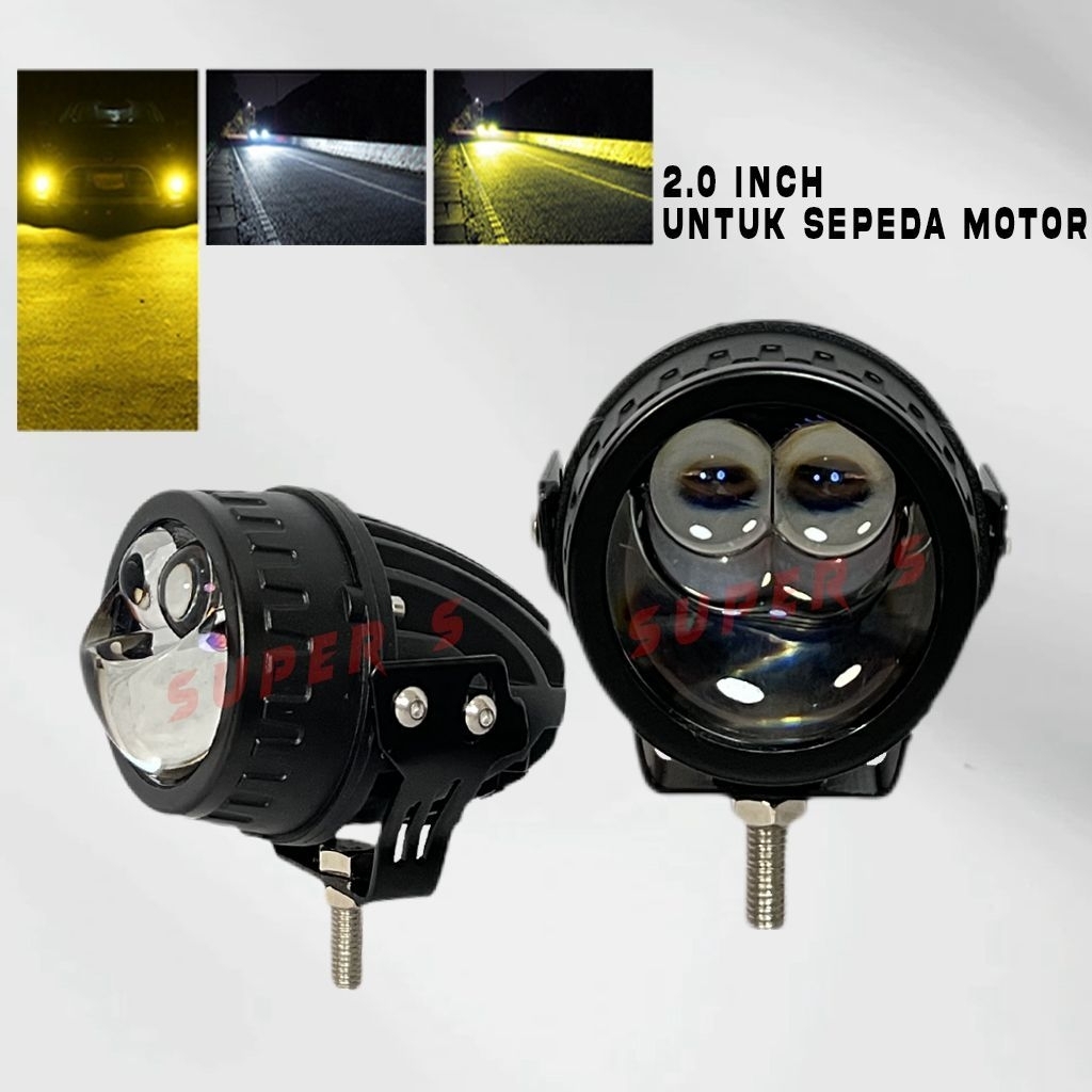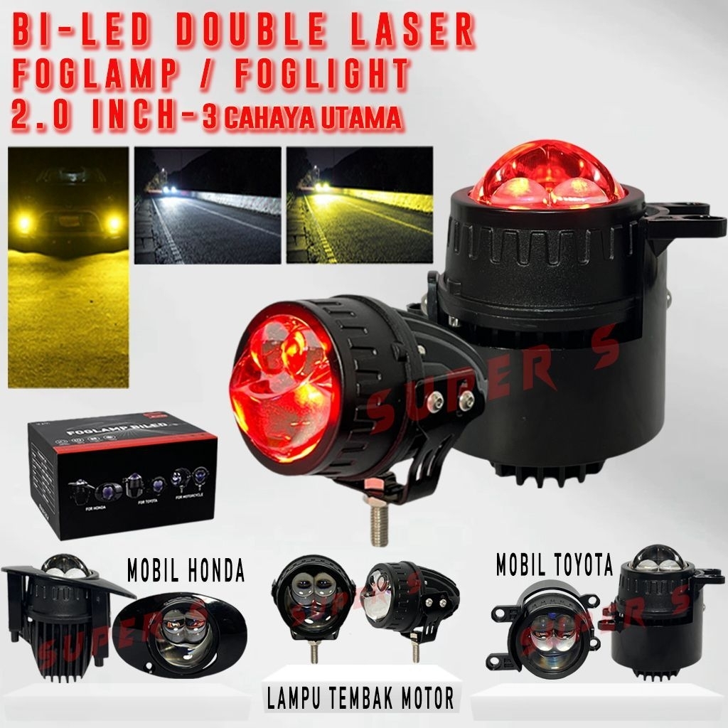 Biled Foglamp Mobil 2 Inch Double Laser Blue Lens 3 Warna Pnp Toyota Waterproof 60Watt