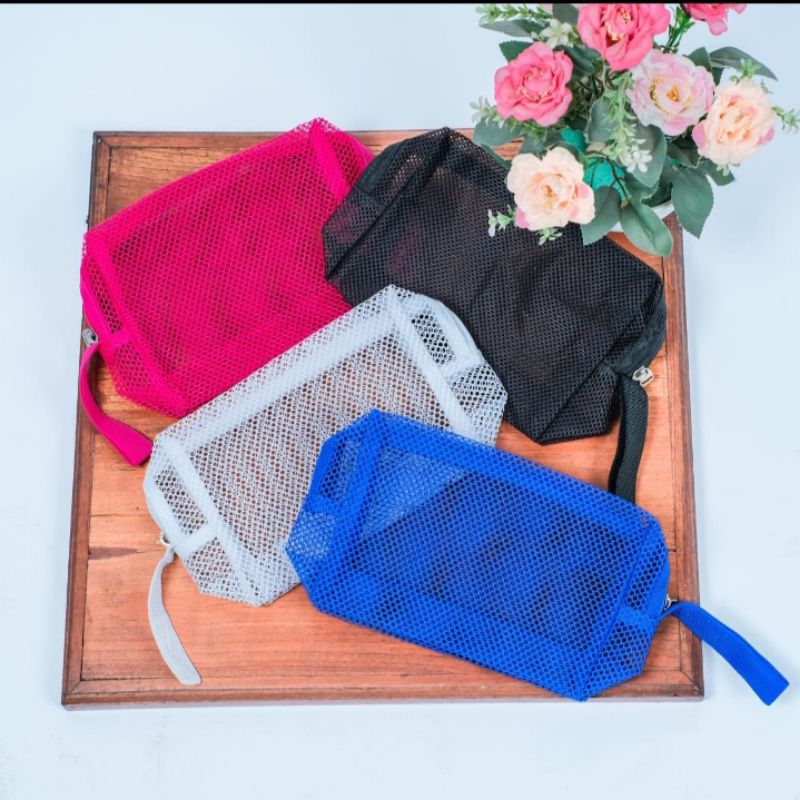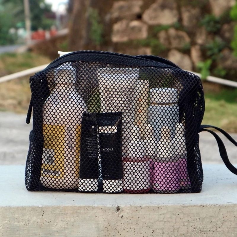 / L hitam / tas kosmetik serbaguna tas make up jaring multifungsi tas kosmetik pouch bag tas serbaguna organizer proa wanita