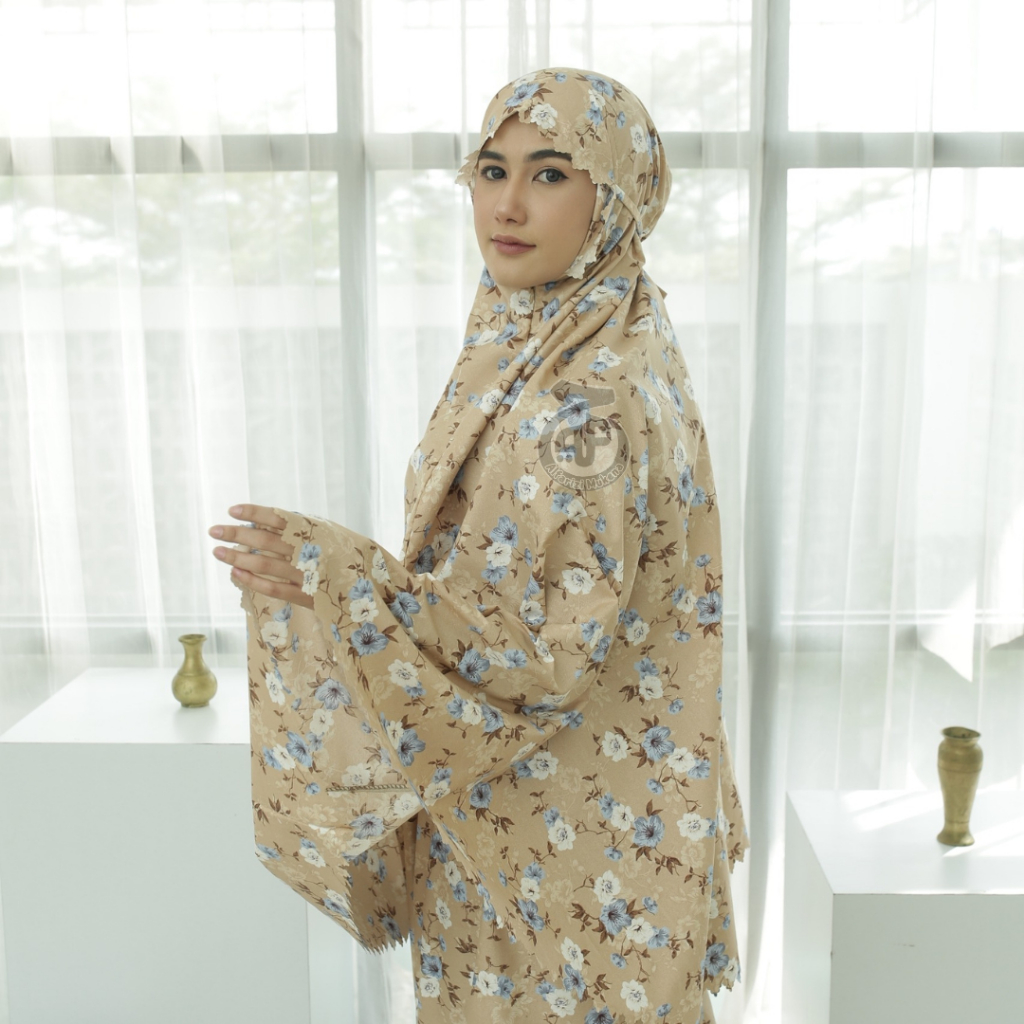 Allfarizi | Mukena Travel Mini 2in1 Aliza Katun Motif Free Tas Pouch Terbaru