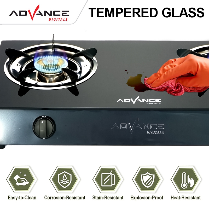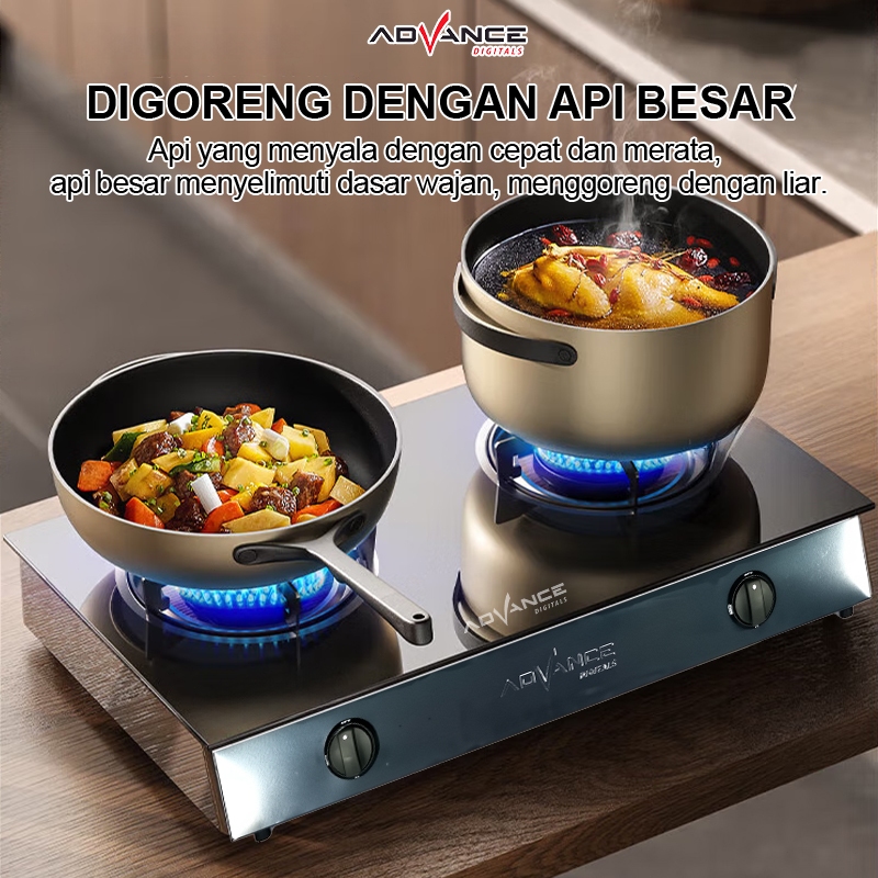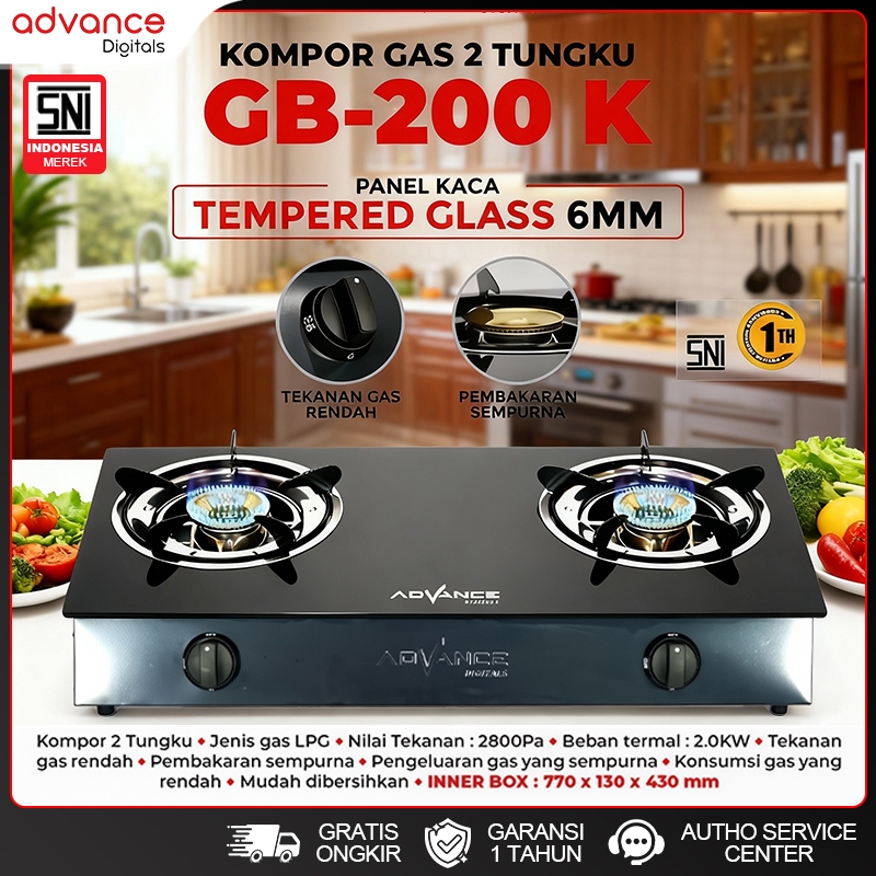 Advance Gb-200K Kompor Gas 2 Tungku Kaca Api Biru Bahan Tebal Irit Gas Garansi Resmi 1 Tahun