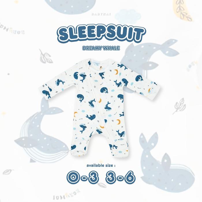 BABY HAI Long Sleeve Tencel - Sleepsuit Panjang Untuk Si Bayi Tidur dan Bermain - Bahan Katun - Dreamy Whale 0-3