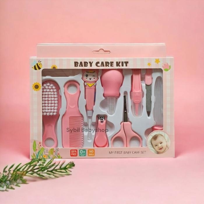 Perlengkapan Dasar Bayi Set Newborn isi 10 (LED Korek Kuping. Gunting Kuku. Sisir Bayi. Dll) Baby Care Kit - PINK 10in1