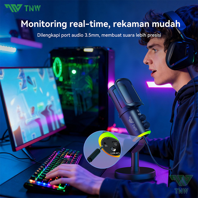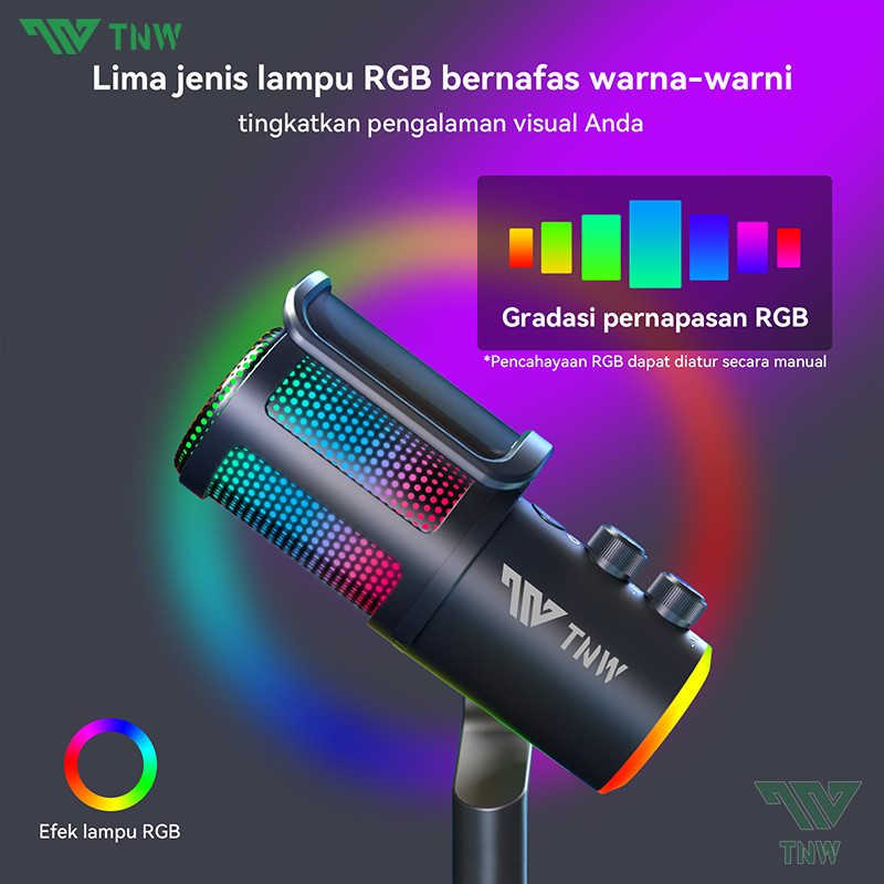 TNW K20 USB Kondensor Mikrofon Wireless Desktop Microphone With RGB Light Untuk caster Gamer Streamer
