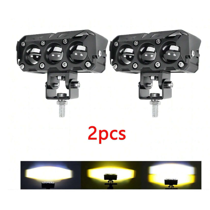 Lampu Tembak CR7 2 Warna 3 Mata LED Kuning Putih G 2Pcs High Low Foglamp SQL Gun Waterproof