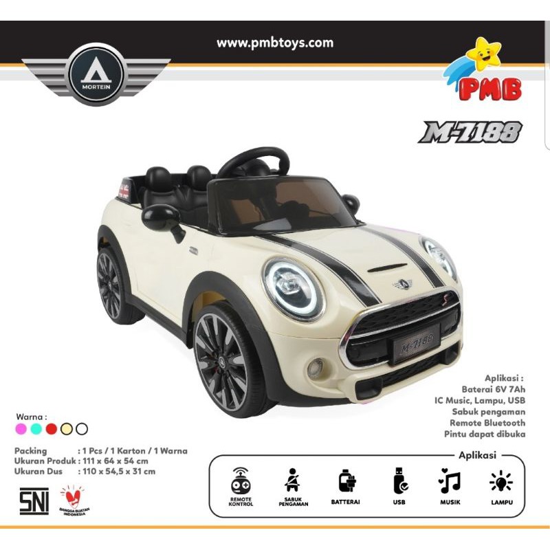 MOBILAN AKI ANAK MODEL MINI COOPER 2WD PMB M-7188 REMOTE + MANUAL