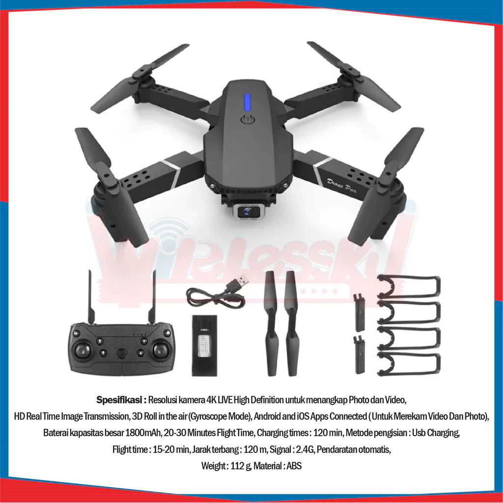 Drone E88 Pro 4K HD Camera Mini RC Foldable Drone Stabil Anti Tabrak Indoor Outdoor Murah