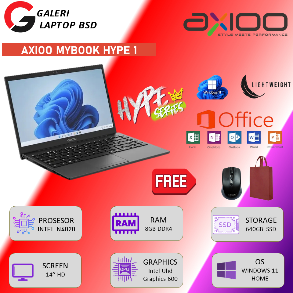 Laptop Sekolah Murah Axioo Mybook Hype 1 Intel N4020 RAM 8GB 256GB SSD Garansi Resmi
